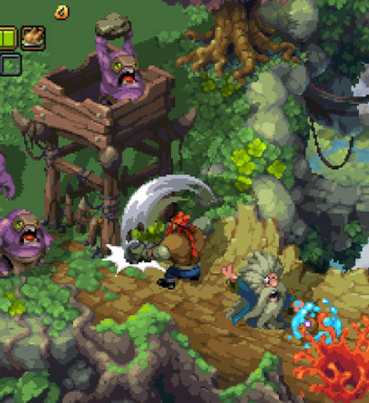 دیگر نکته جالب این بازی، امکان انتخاب شخصیت مورد نظر خود از میان سه قهرمان است؛ Fae the Elf, Iolo the Druid یا Rooney the Marauder سه قهرمان متفاوت و در دسترس شما هستند که هر یک دارای توانایی‌های خاص، سلاح‌ها و ویژگی‌های مخصوص به خود هستند. Fae از دو تیغه کشنده و خنجرهای پرتاب‌شونده سرعتی بهره می‌برد؛ Iolo با ریش قوی خود دشمنان را شلاق می‌زند و گلوله‌های آتشین به سمت آن‌ها روانه می‌سازد و Rooney نیز مانند یک توپ ویران‌گر عمل می‌کند که می‌تواند مستقیما به دشمنان ضربه وارد کرده یا از راه دور، توپ‌های ویران‌گری را روانه آن‌ها سازد. فراموش نکنید که دشمنان حاضر بر سر راه قهرمانان شما، باس‌فایت‌های خطرناک هر منطقه و سربازانی که به شدت به Etheldred وفادار هستند خواهند بود که تا پای جان برای متوقف ساختن شما خواهند جنگید.