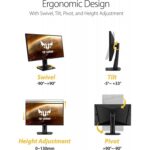 مانیتور TUF VG27AQ دارای طراحی فوقالعاده زیبایی برگرفته از جتهای جنگنده ضد رادار است و میتوانید آن را به چپ و راست یا بالا و پایین بچرخانید. این مانیتور دارای یک پورت Display 1.2 و دو عدد پورت HDMI 2.0 است. همچنین، این مانیتور دارای یک نرم افزار با تنظیمات متعدد و قابلیت ذخیره تنظیمات برای بازیهای مختلف است. این نرم افزار دارای قابلیتهایی مثل Gameplus و GameVisuals که با استفاده از آنها میتوانید از ابزارهای کاربردی هنگام بازی بهره ببرید و تنظیمات نمایشگر از جمله رنگ، کنتراست و روشنایی را برای بازیهای مختلف تغییر دهید.